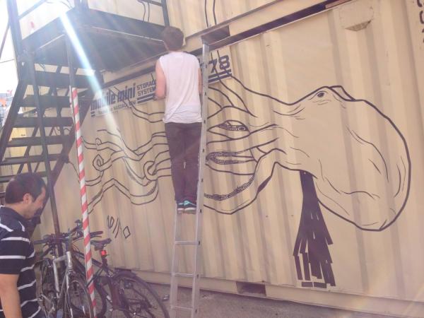 Red Gallery asked me to do a huge piece on the side of these two shipping containers. After the fun I had doing the Nozstock one I decided to do another huge octopus.